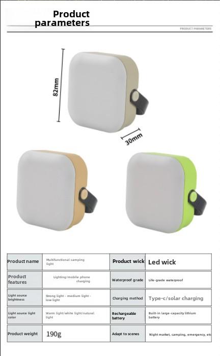 Outdoor Multi-functional Camping Light Emergency Super Bright Long Battery Life Solar Model Hook Tent Light Power Bank