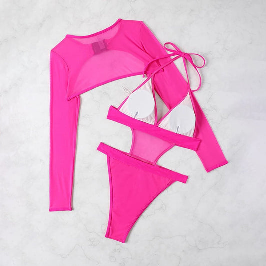 Amazon Multi-color Sexy Triangle One-piece Swimsuit Women, European and American Blouse Long-sleeved Hot Spring Bikini Swimsuit
