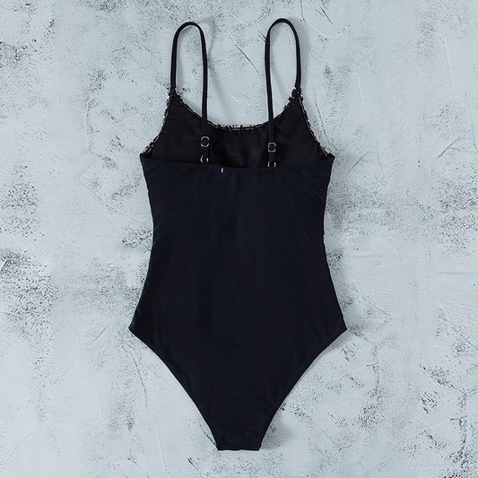 2025 New Leopard Print Lace One-piece Swimsuit Female Amazon Europe and America Sexy Tight Triangular Bikini Swimsuit