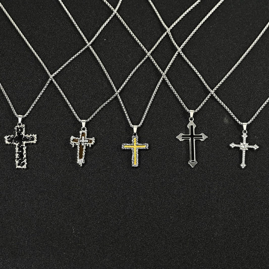 Hip Hop Necklace Jewelry Men's Popular Street Cross Personality Bouncing Alloy Pendant Sweater Chain Wholesale