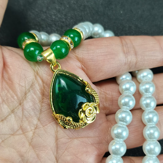 New Chinese Summer Welfare Imitation Pearl Necklace Green Agate Pearl Clavicle Chain Send Mom Set Foreign Trade