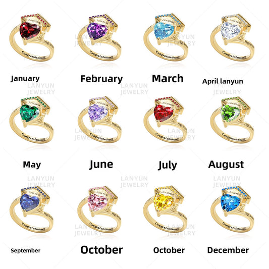 2025 New Cross-border Independent Station Graduation Commemorative Scholar Hat Women's Love Birthstone Ring Ring Customization