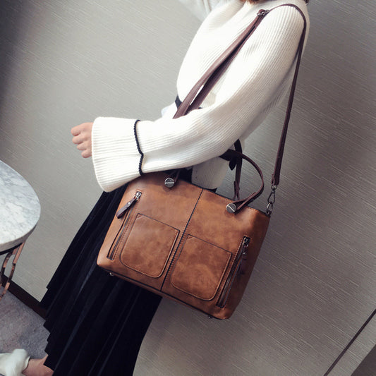 European and American Foreign Trade New Women's Bags Large Bags Simple and Fashionable Women's Handbags Retro Shoulder Messenger Bags