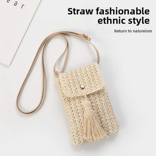 Summer New Korean Ins European and American Fashion Mini Mobile Phone Oblique Span Bag Solid Color Straw Woven Foreign Trade Women's Bag
