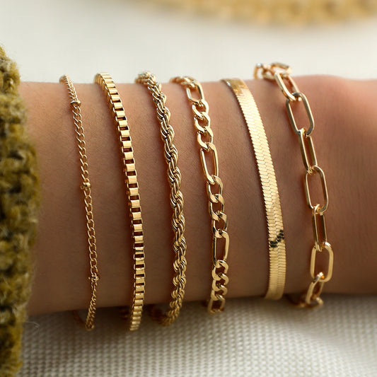 Europe and The United States Cross-border Bohemian Minimalist Jewelry Metal Chain Women's Set 6 Multi-layer Chain Simple Bracelet
