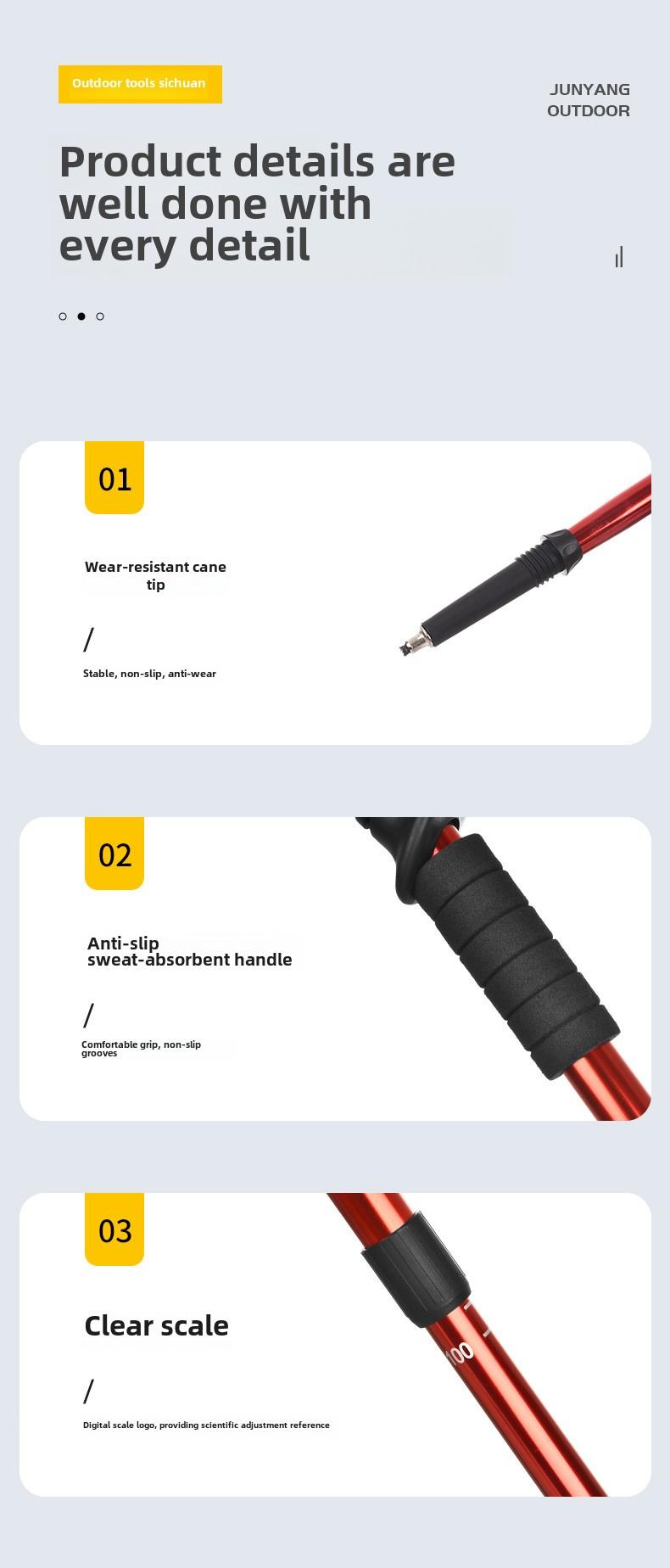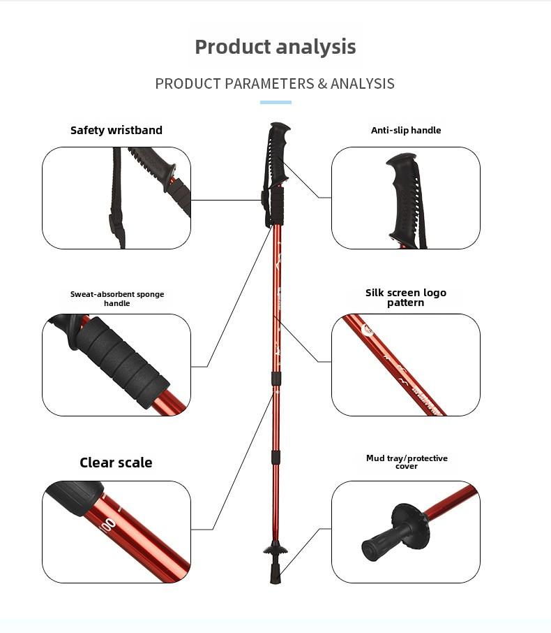Aluminum Alloy Three-section Shock Absorber T-handle Straight Handle Mountaineering Cane Cane Hiking Outdoor Products