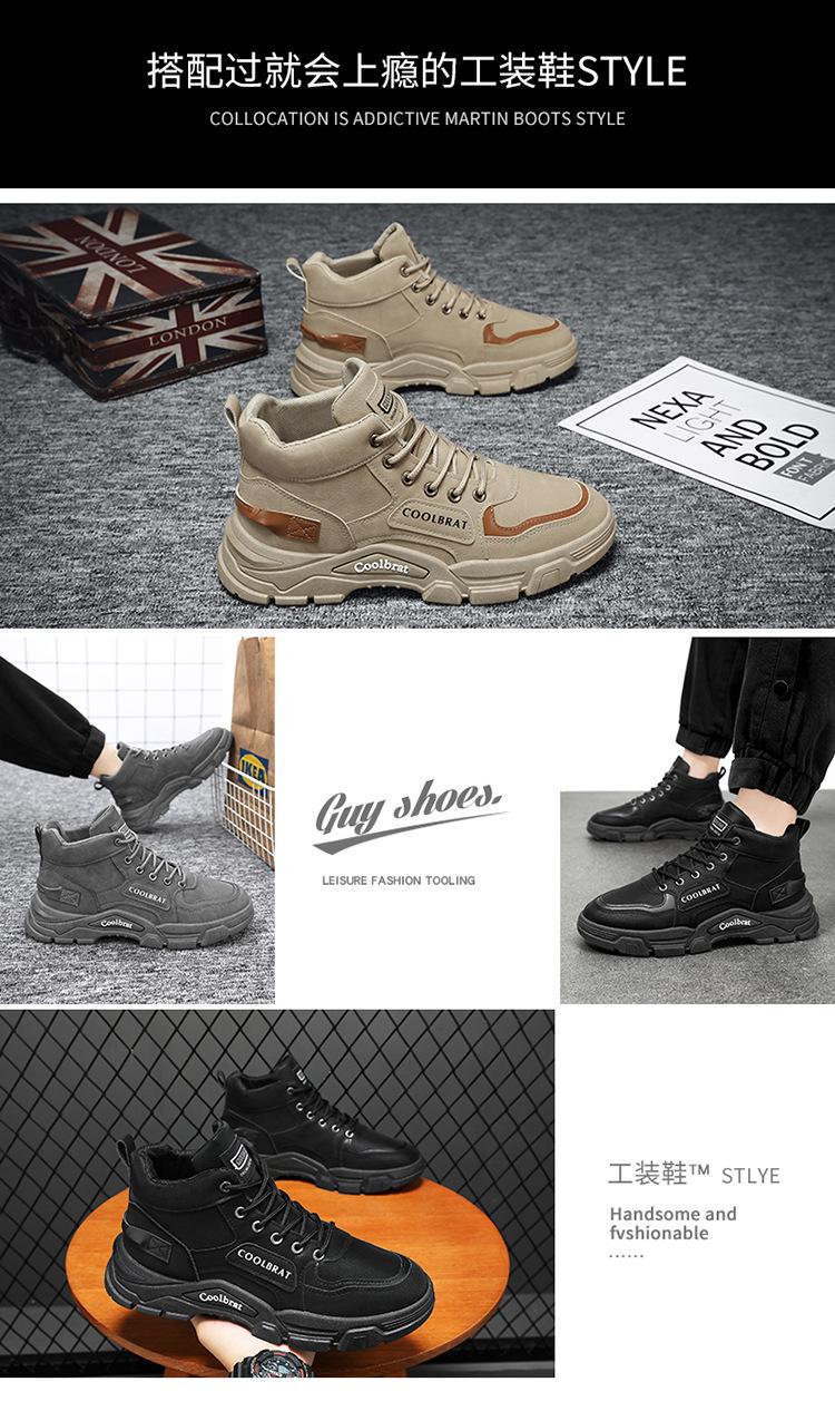 Spring men's shoes new Martin boots men's trend versatile thick-soled non-slip high-top tooling shoes men's short boots labor insurance shoes