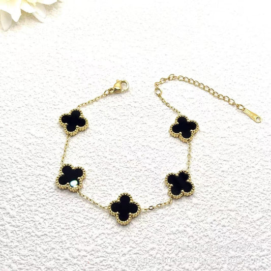 Explosive Lucky Four-leaf Clover Bracelet Titanium Steel Double-sided Fritillary 18K Stainless Steel Korean Version Versatile Factory Direct Sales
