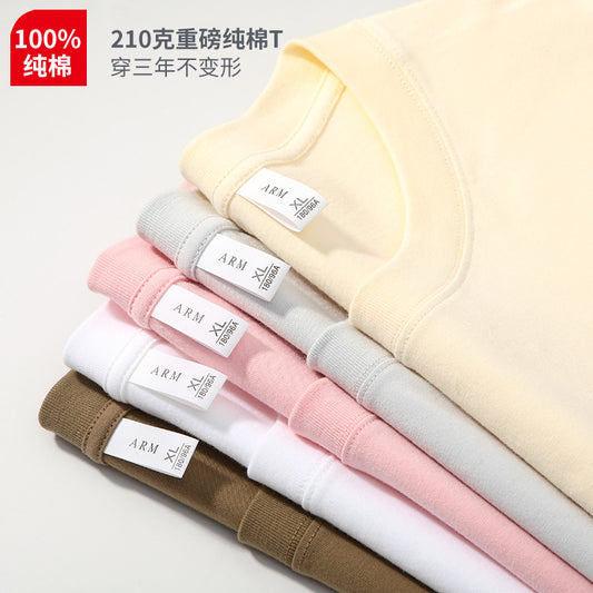 210G Pure Cotton T-shirt Round Neck Solid Color Men's and Women's Same Bottoming Shirt Half-sleeved Spot Short-sleeved T-shirt Casual Summer