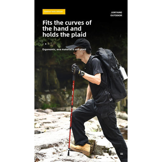 Aluminum Alloy Three-section Shock Absorber T-handle Straight Handle Mountaineering Cane Cane Hiking Outdoor Products