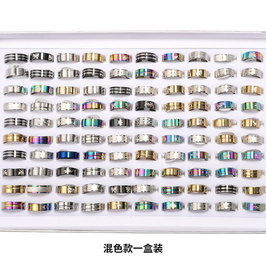 Colorful Jewelry Foreign Trade Trend Hot Sale 1.2 Thick Titanium Steel Mixed Ring Stainless Steel Mixed Ring Box Wholesale