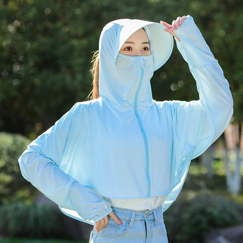 Cycling Sunscreen Clothes Women's Ice Silk Thin Sunshade Clothes Riding Electric Car Training Long-sleeved Beach Travel Jacket